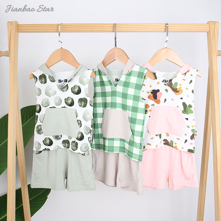 Palavras-chave | Novo design lindo conjunto de roupas de bebê unissex sem mangas de verão |