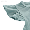 Palavras-chave | Macacão de bebê com babado sem mangas com botão e roupas para bebês recém-nascidos |